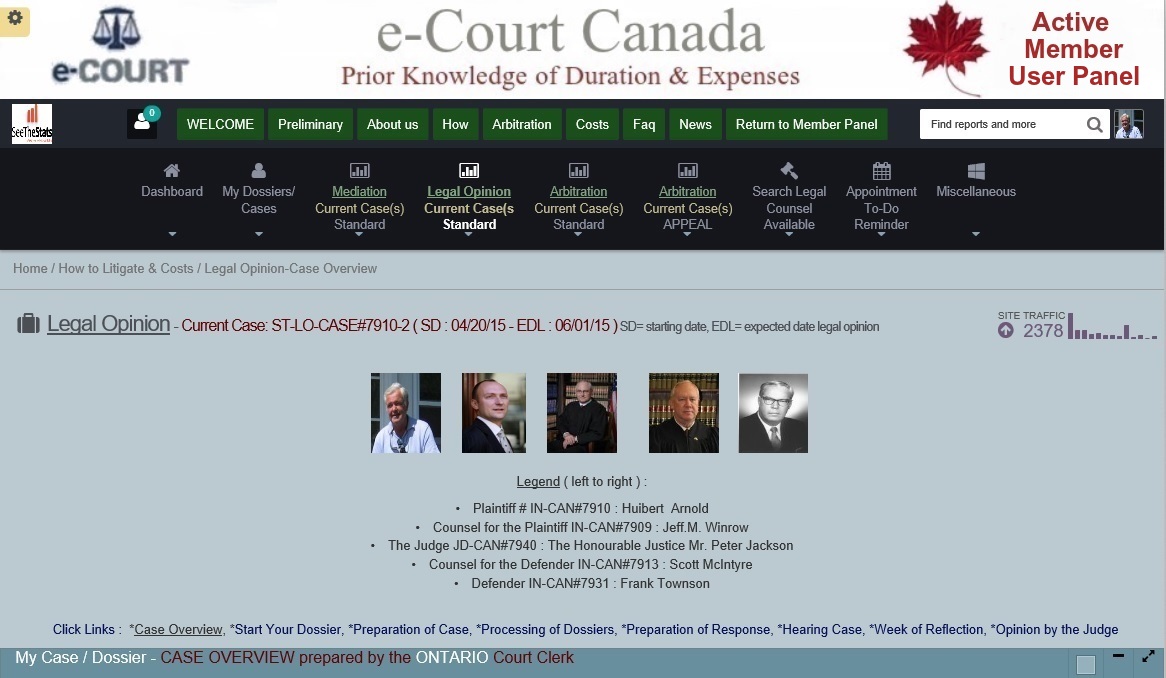 e-Court aims to offer a venue where members are linked to independent "participating" professionals who can provide competent, affordable, secure, transparent and speedy justice. These professionals whilst not being employees of e-Court have been thoroughly vetted prior to offering their services. It is important to note that legal advice can only be provided by members of their respective provincial law society. For example a Manitoba legal professional selected from the e-Court roster is not permitted to offer legal advice to a e-Court member with residence in Ontario with respect to Ontario law, but he/she is permitted to offer non-legal opinions and business advice to all other provinces and beyond, other than the province of Manitoba. Of course none of foregoing restrictions pertain to mediation & arbitration services offered by e-Court. These fields are not controlled by any provincial law society.