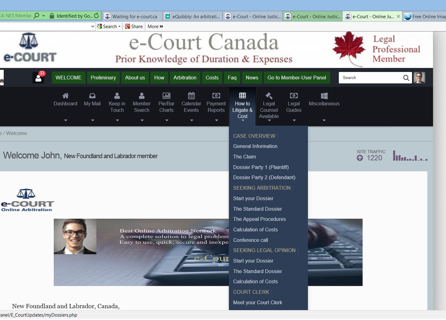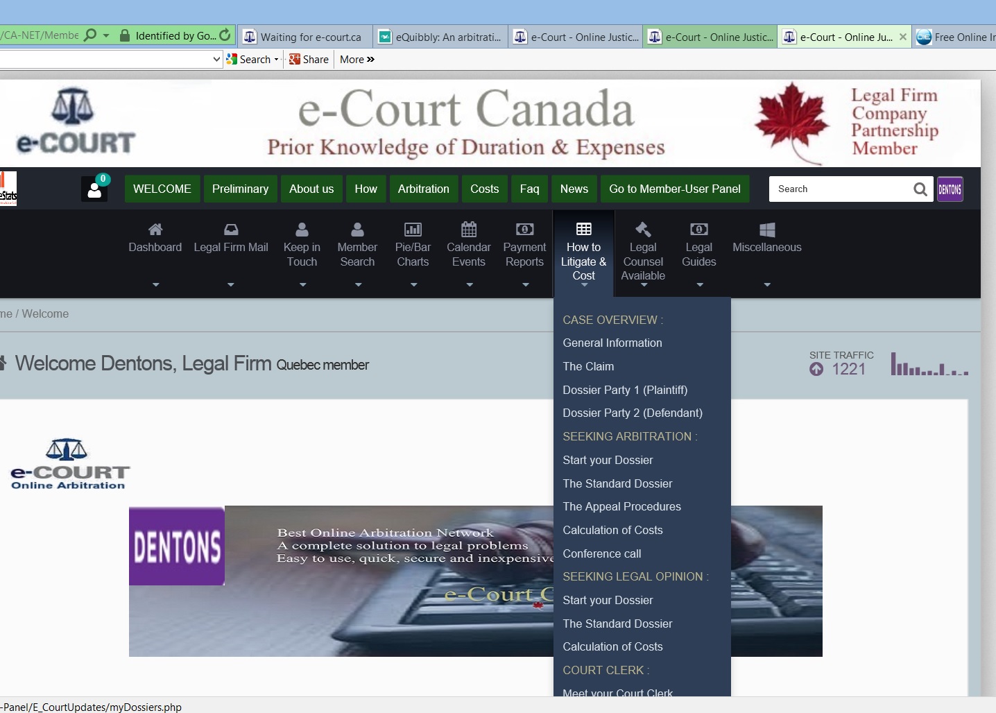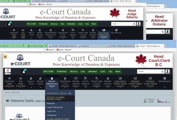 e-Court Canada will re-shape the future of Canadian Litigation. Forces transforming the legal industry promise the emergence of new models, such as e-Court that will allow clients to reap huge efficiencies. It took our IT development team five years and in excess of $3 million investment and growing, to develop a database which unravelled the legal complexities yet adheres to strict Canadian legal laws. To our knowledge there is to-date no privately funded organization which is able to match e-Court's innovative database and other structures. We can handle a minimum of #20,000 cases simultaneously; Welcome to Canada's most exciting non-governmental arbitration. Let us show you how !