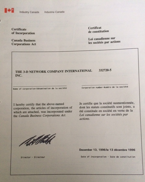 This organization was incorporated in Canada on December 13th 1996 under number 3327205 with the charter to network (defined in the fullest meaning of the word i.e to include use of Internet ) between parties for common business & personal purposes e.g in areas such as employment, trade, legal, tourism and internet hosting. The company shares the vision of e-Court of a transparent, fast and affordable access to legal services. The corporate 3-DNET (R) office is located in Ottawa, Ont. Canada, email: exec@3dnet.org