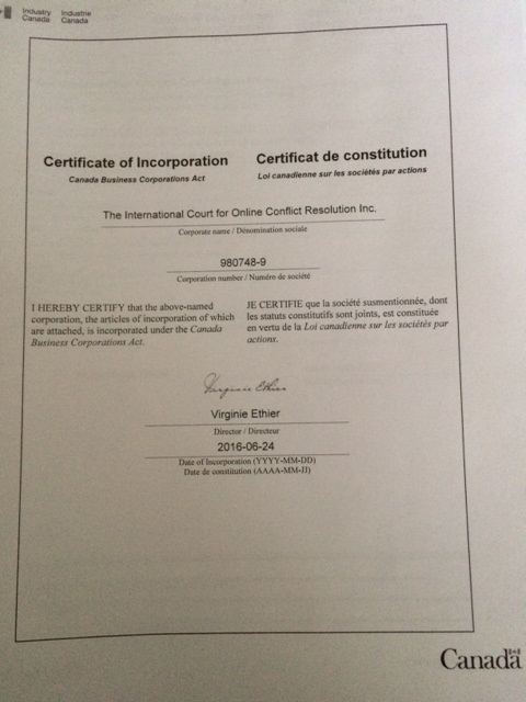 The International Court for Online Conflict Resolution Inc.